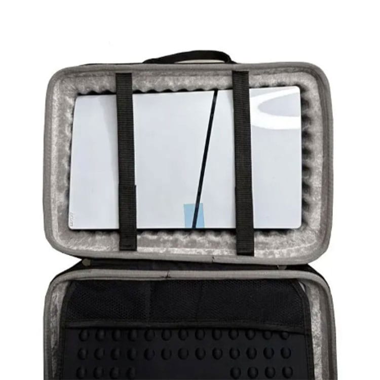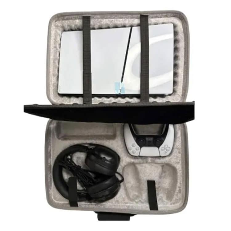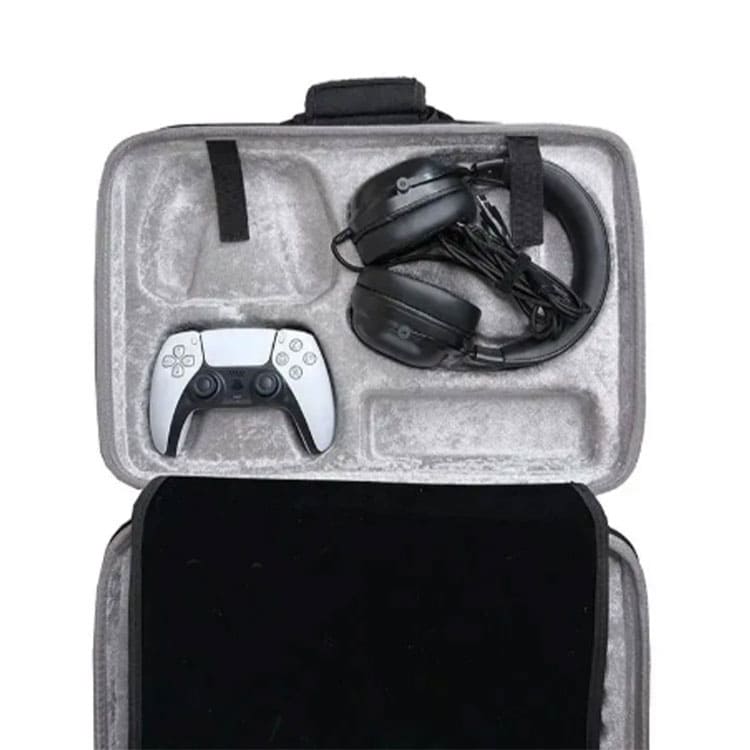 - ویژگیها: دارای ضربهگیر و لایهی عایق نرم داخلی، فضای مجزا برای نگهداری کنسول و دو دوال سنس و لوازم جانبی