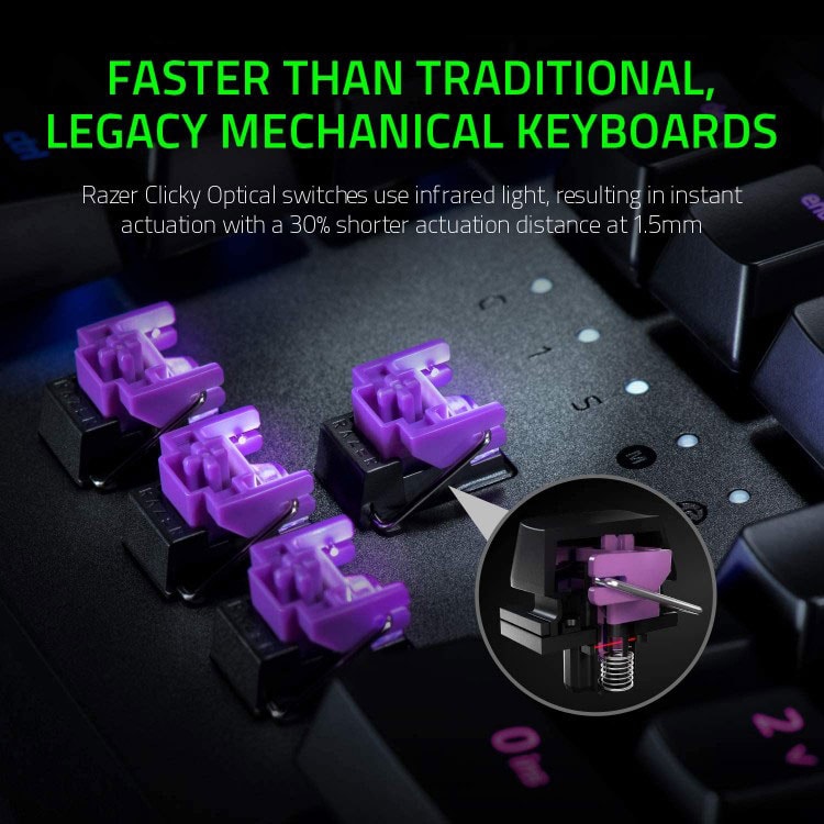 مشخصات، قیمت و خرید کیبورد با سیم گیمینگ Razer Huntsman Elite Optical سوییچ بنفش